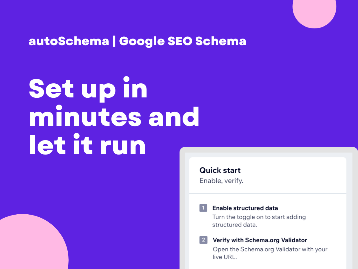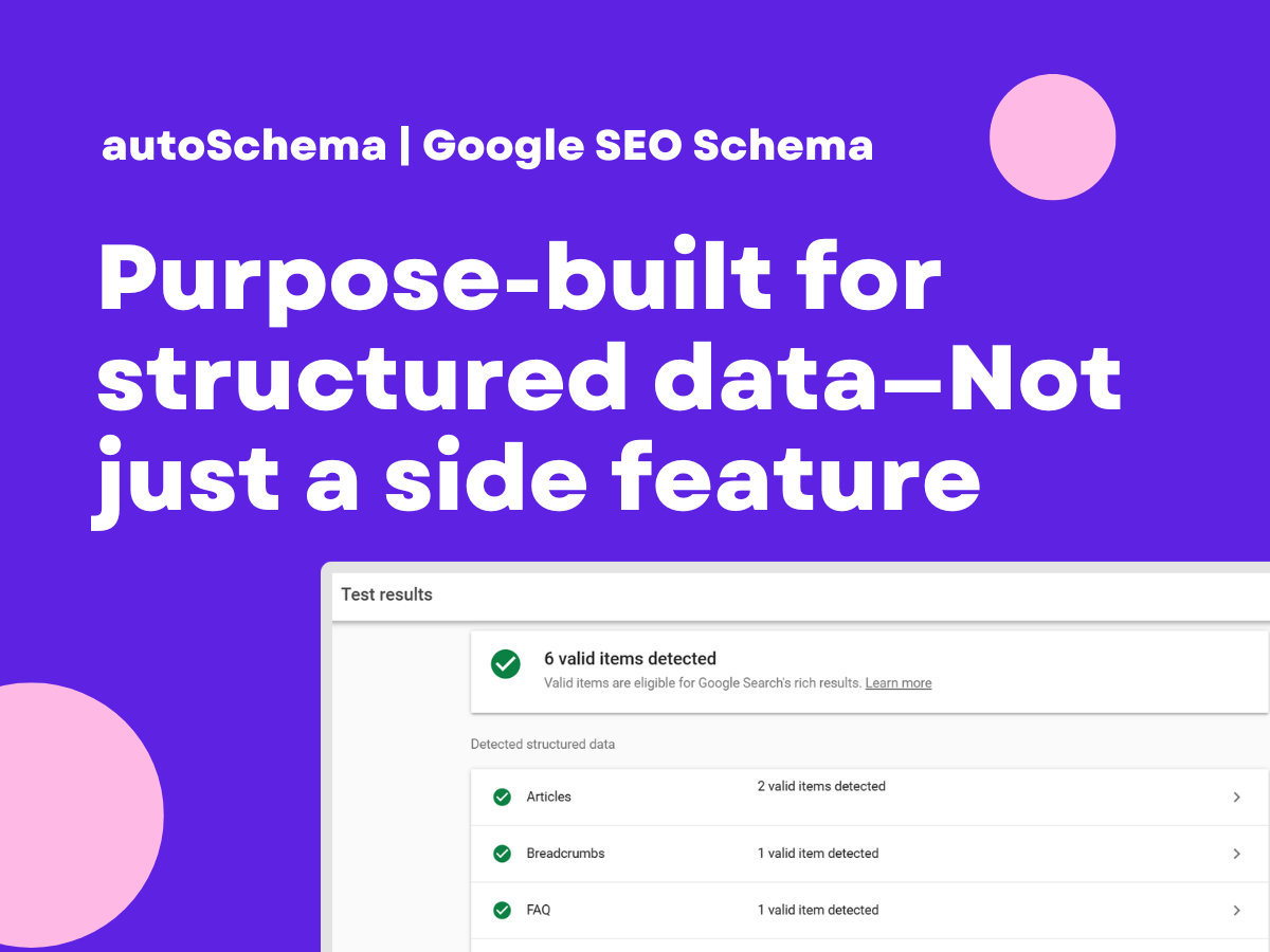 autoSchema makes it easy to add correct, Google-friendly structured data to your site, without any technical knowledge. Structured data helps search engines understand your content more clearly. It can improve how your pages appear in Google Search, enable rich results, and reduce the risk of errors caused by missing or incorrect markup. Manually adding and maintaining this data is time-consuming and easy to get wrong. autoSchema handles it for you automatically. Once installed, the app generates and maintains structured data for all relevant pages on your site. It updates itself as Google’s standards evolve, so you never have to worry about keeping things current. autoSchema also checks for existing markup and avoids creating duplicates or bad data that could confuse search engines. Everything is designed to be simple and safe. There’s no code to edit, no settings to fine-tune, and no impact on your site’s design or performance. Just install, activate, and let autoSchema take care of the rest.