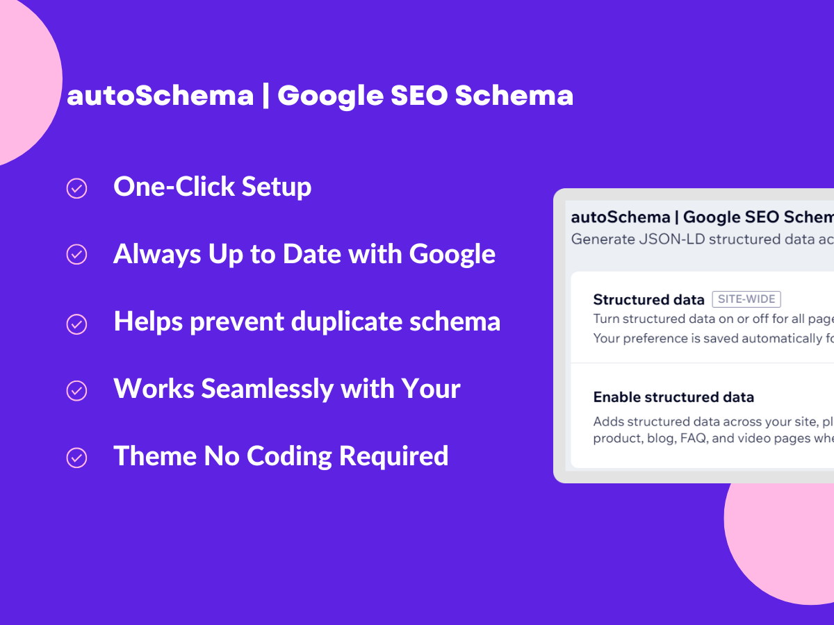 • One-Click Setup: Activate Google structured data across your site with a single click