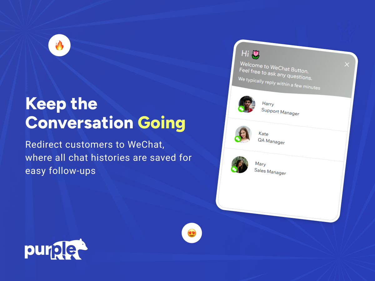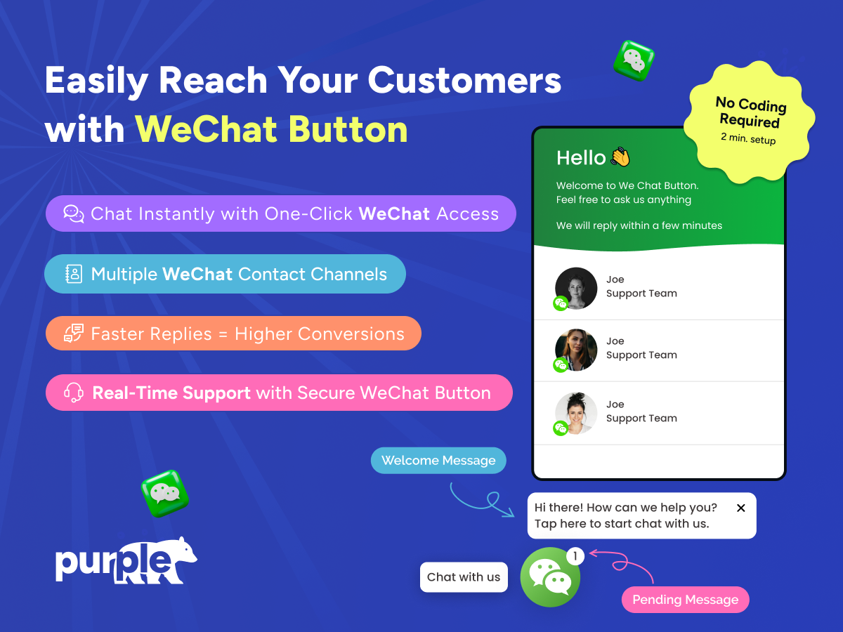 Add the WeChat Button to your site today and start connecting with customers — anytime, on any device.