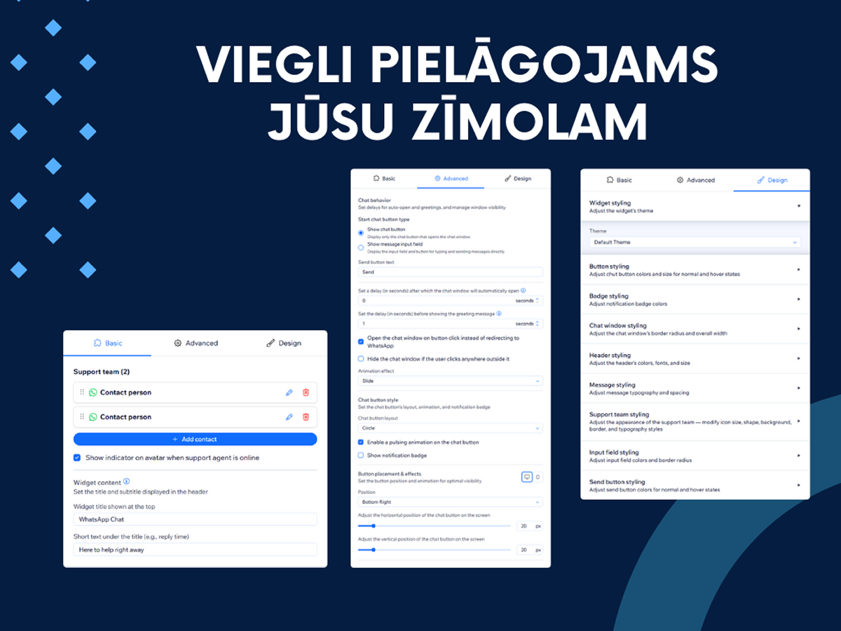 แชท WhatsApp ช่วยให้ผู้เยี่ยมชมเว็บไซต์ของคุณสามารถติดต่อคุณได้ทันทีผ่าน WhatsApp เพิ่มปุ่มแชท WhatsApp ลงในเว็บไซต์ของคุณได้ภายในไม่กี่นาที — ไม่ต้องเขียนโค้ด ให้บริการซัพพอร์ตลูกค้าอย่างรวดเร็วด้วยตัวเลือกการติดต่อที่หลากหลาย ช่วยให้ผู้เยี่ยมชมสามารถติดต่อทีมงานที่เหมาะสมได้ทันที เพิ่มการมีส่วนร่วม เพิ่มอัตราการแปลง และเชื่อมต่อกับลูกค้าผ่านแอปแชทที่พวกเขาชื่นชอบ ปรับแต่งสี ข้อความ และไอคอนได้อย่างง่ายดายให้เข้ากับแบรนด์ของคุณ เพื่อสร้างประสบการณ์ไลฟ์แชทที่ราบรื่น ไม่ว่าจะเป็นการตอบคำถาม แนะนำการซื้อ หรือให้การสนับสนุนแบบเรียลไทม์ แชท WhatsApp ช่วยสร้างความสัมพันธ์ที่แข็งแกร่งและเปลี่ยนผู้เยี่ยมชมให้กลายเป็นลูกค้าประจำ